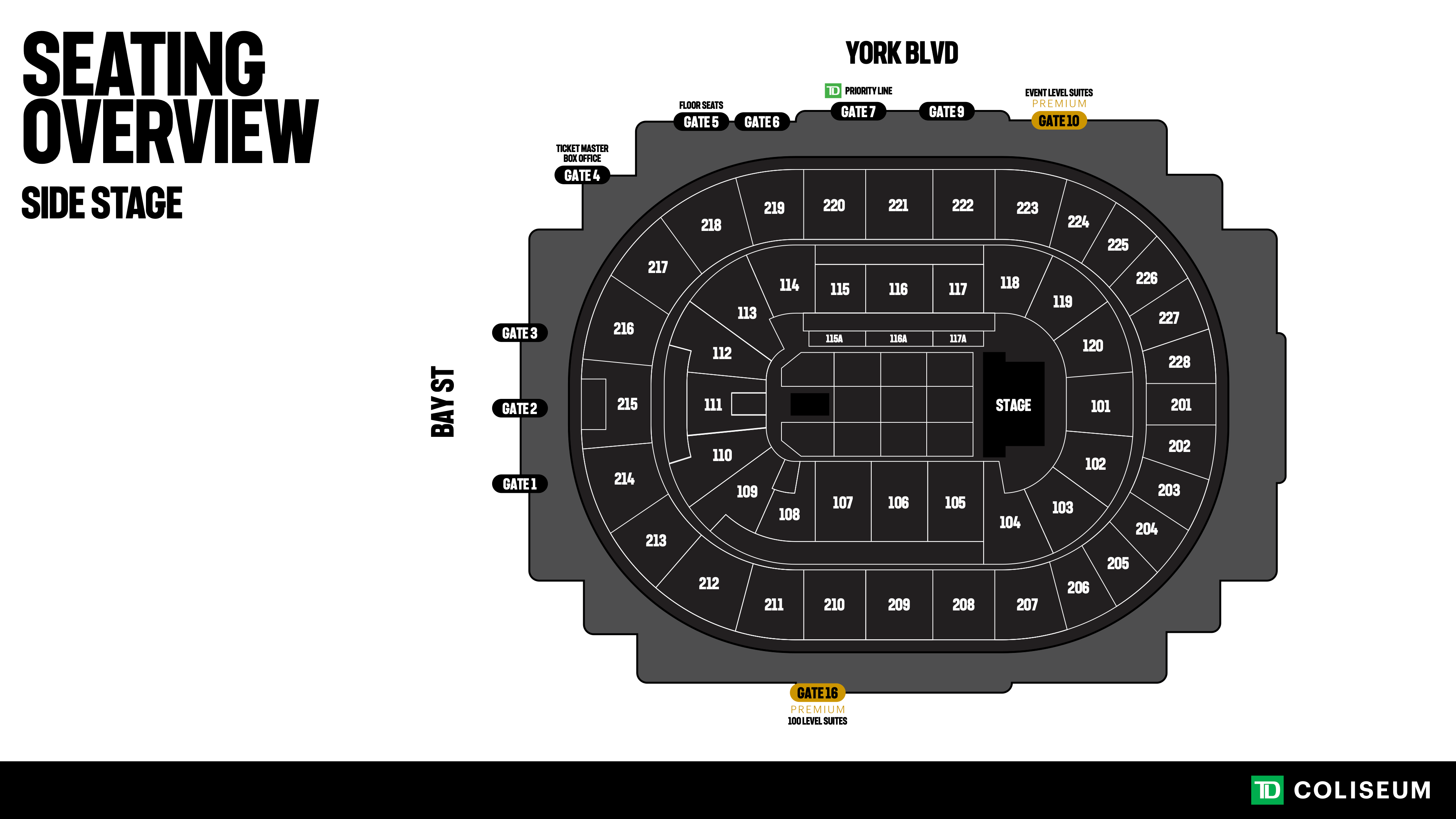 Note the entrance gate closest to your seats for the easiest entry into TD Coliseum.